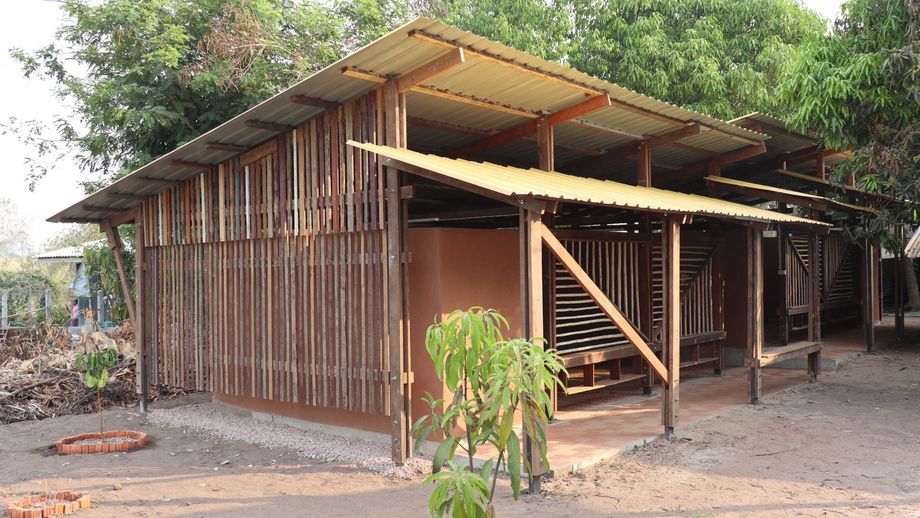 Gemeinsam mit dem Architekten Jan Glasmeier von Simple Architecture und dem Verein Social Architecture e.V. konnten die Teilnehmenden über mehrere Wochen hinweg den gesamten Prozess des analogen Entwerfens und Bauens unmittelbar erfahren. Vor Ort wurden mehr als 2.000 Lehmsteine selbst produziert, von der Sonne getrocknet und anschließend verbaut. Die Dächer entstanden aus wiederverwendetem Teakholz, während der Boden aus gebrannten Ziegeln gefertigt wurde. Auf diese Weise entstanden zwei neue Klassenhäuser sowie eine Aula.