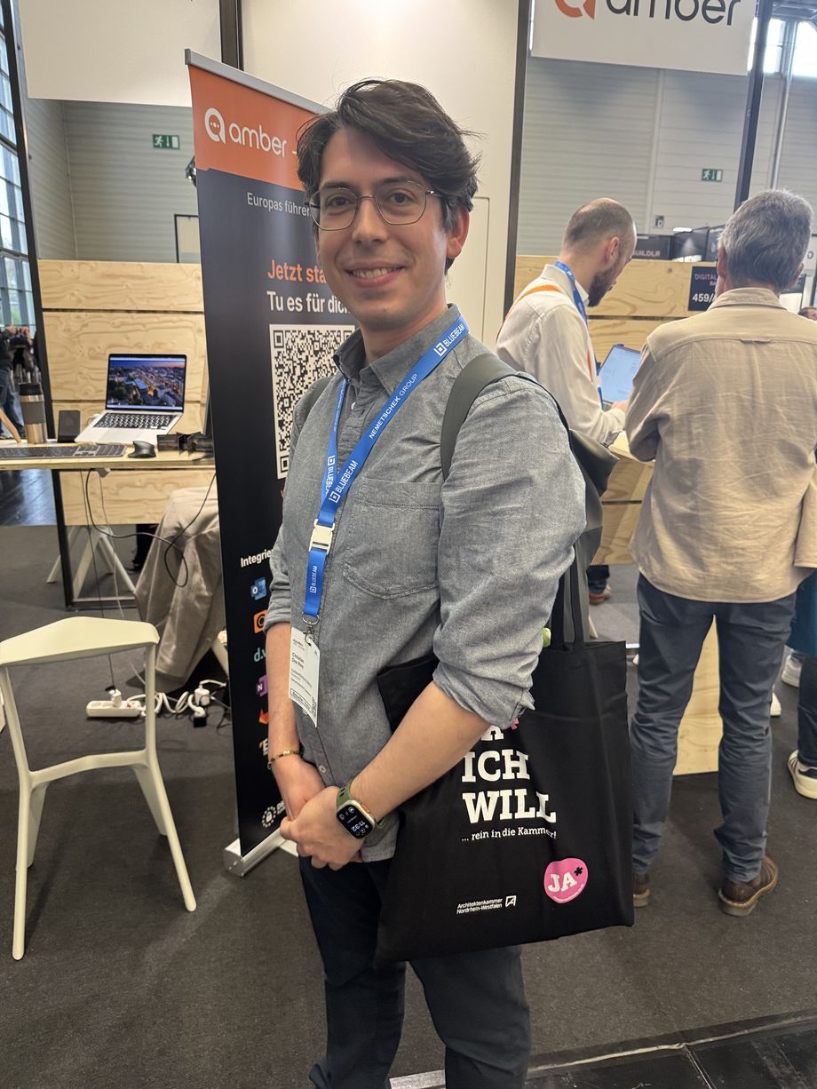 Chris Paulzen hingegen arbeitet im IT-Bereich in einem eher kleinen Planungsbüro in Düsseldorf, das sich hauptsächlich mit serieller und nachhaltiger Fassadensanierung beschäftigt. „Das Thema der Digitalisierung ist für uns unheimlich wichtig; wir wollen ökologisch, kosteneffizient und digital arbeiten.“ Deshalb sei die „digitalBAU“ für ihn eine wertvolle Inspiration. „Ich will hauptsächlich Eindrücke sammeln und Kontakte knüpfen.“