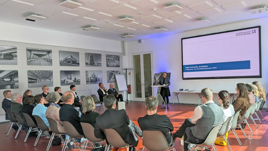Wie kann – und sollte - das Architekturstudium auf die wachsende Bedeutung des Bauens im Bestand reagieren? Dieser Frage widmete sich der 4. Dekaninnen- und Dekane-Dialog der Architektenkammer Nordrhein‑Westfalen am 27. April 2026 im Baukunstarchiv NRW.